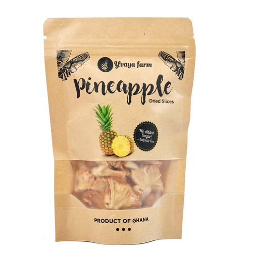 Our Yvaya Farm Dried Pineapple comes from vibrant yellow, Ghanaian pineapples grown using organic practices in the Eastern Region of Ghana. Rich in vitamin C, cholesterol free, and high in potassium, our dried pineapple is perfect for kids at school, as an office snack, or out on the trail.